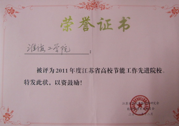 在日前召开的江苏省高校后勤管理研究会能源管理专业委员会(简称 “江苏高校能专会”)上,我校被评为“2011年度江苏省高校节能工作先进院校”,这是我校首次获得此殊荣。