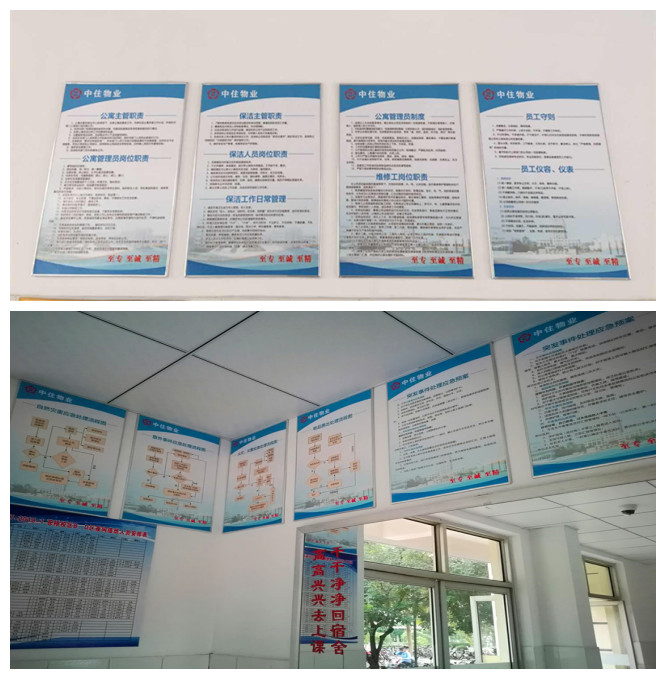 “一步走”:制定和完善各项规章制度并公示上墙,让工作人员有章可循,同时便于师生了解物业管理的规章制度及要求,了解相关服务信息。