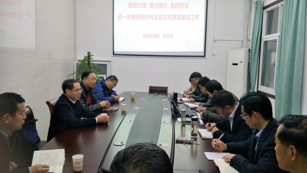 会上,毛宝海处长做了“思想引领、重点强化、制度防范,进一步做好新时代后勤党风廉政建设工作”的汇报,详细介绍了后勤管理处在项目立项、招标采购、施工管理、项目验收及款项结算等重点领域和核心环节所采取的廉政风险排查及防控措施、做法和取得成效。