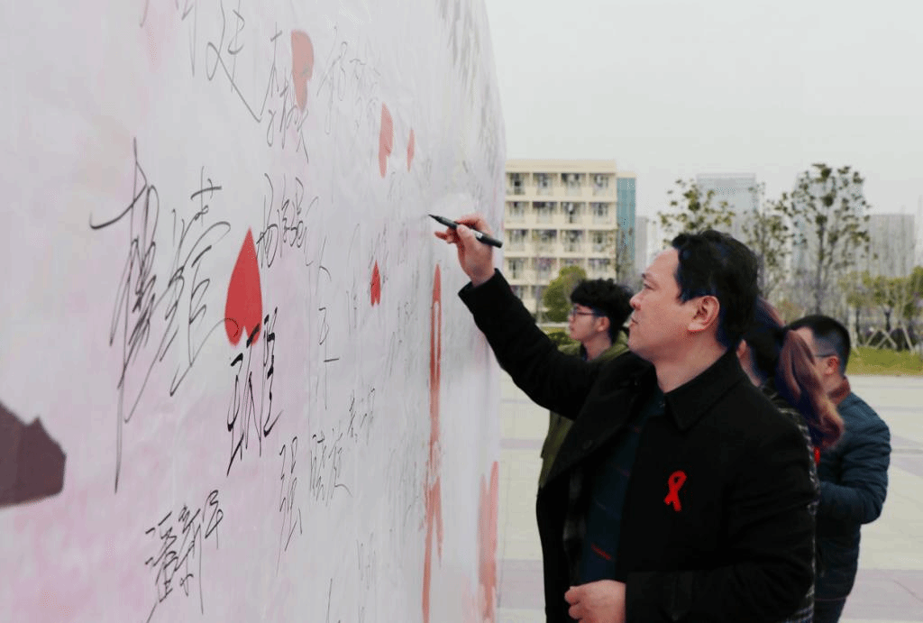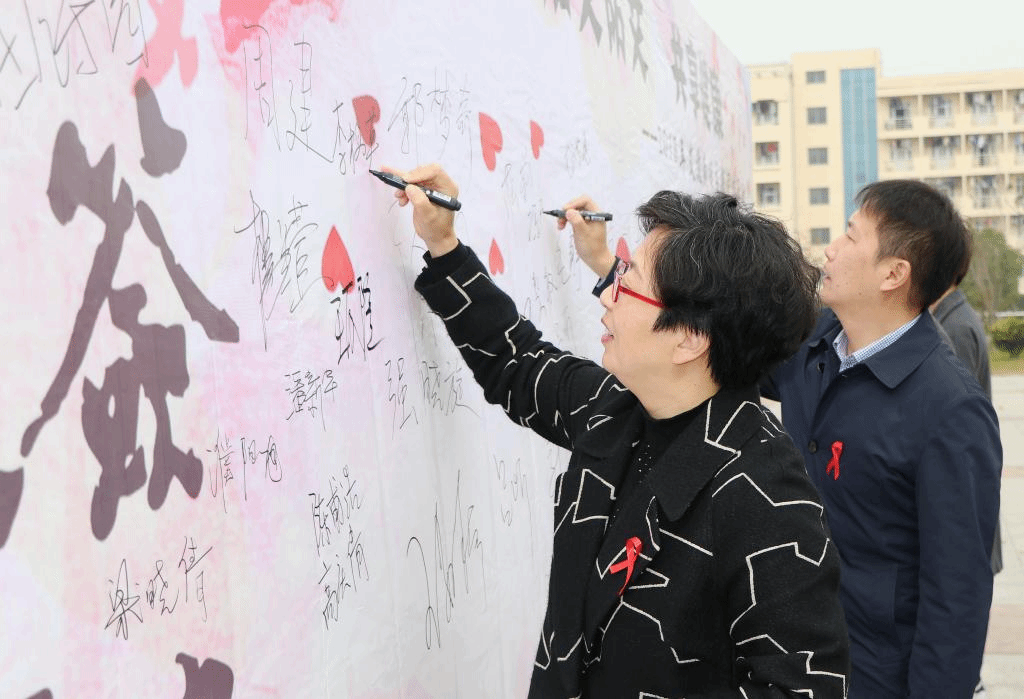 2018年12月1日是第31个“世界艾滋病日”。基于艾滋病发病率呈逐年递增的趋势,为了更好地普及艾滋病的相关知识,11月30日上午,“主动检测,知艾防艾,共享健康”主题宣传活动在我校苍梧校区第四食堂北广场、通灌校区前程餐厅前同时开展。副校长李梅英出席活动,校后勤管理处处长毛宝海、党委宣传部副部长周锦忠、校团委副书记朱小明等参加现场活动。