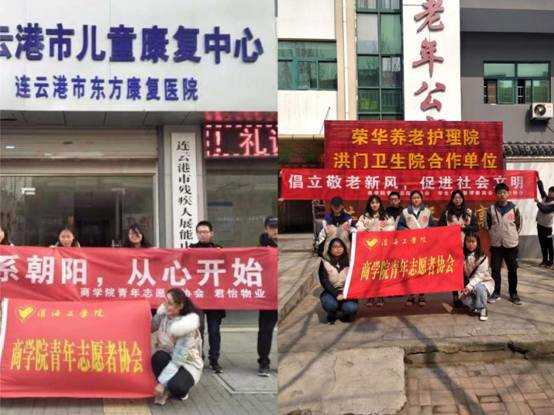 上午9时,两队志愿者分两路出发。一路6名志愿者及活动负责人前往海州区绿园南路98号的东方康复医院;另一路13名志愿者以及负责人前往海州区青岛花园南门97号的荣华老年公寓进行志愿服务活动。