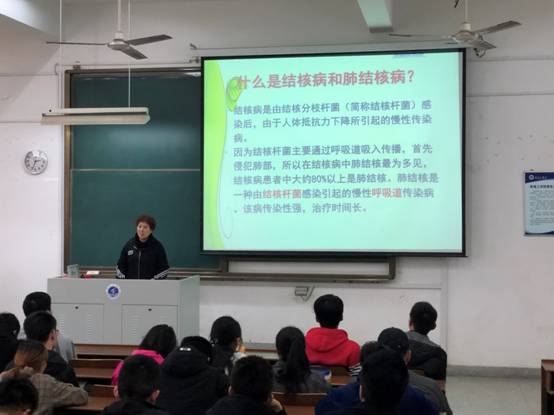 时值3月24日第二十四个“世界防治结核病日”到来之际,高新区社会事业局陆玉琴主任,应邀于3月20日下午在我校文通楼A楼203教室,开展结核病防治知识专题讲座。