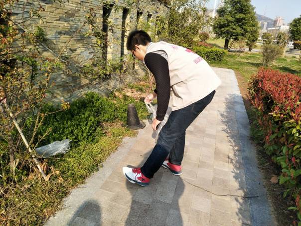 下午3时,青协成员于苍梧校区主楼门口集合,清点人数后,将志愿者分为三组,并任命组长。下午3时15分,三位组长带领组员出发,分别在A区宿舍楼周边、主楼和文通楼捡垃圾,针对教学楼教室及周边、河边的废纸、果皮、易拉罐等垃圾进行捡取。责任区域拾取完毕后,各组组长指导组员把不可回收的垃圾扔入垃圾箱,把部分可回收的(如易拉罐,可乐瓶)进行垃圾分类。3时40分,教学区捡拾结束,全体成员集合,一同前往静思湖。成员达到静思湖后,进行新一轮捡拾,短短几十分钟,大家手中的垃圾袋都鼓了起来。下午4时,清理完静思湖周边垃圾后,捡拾结束。