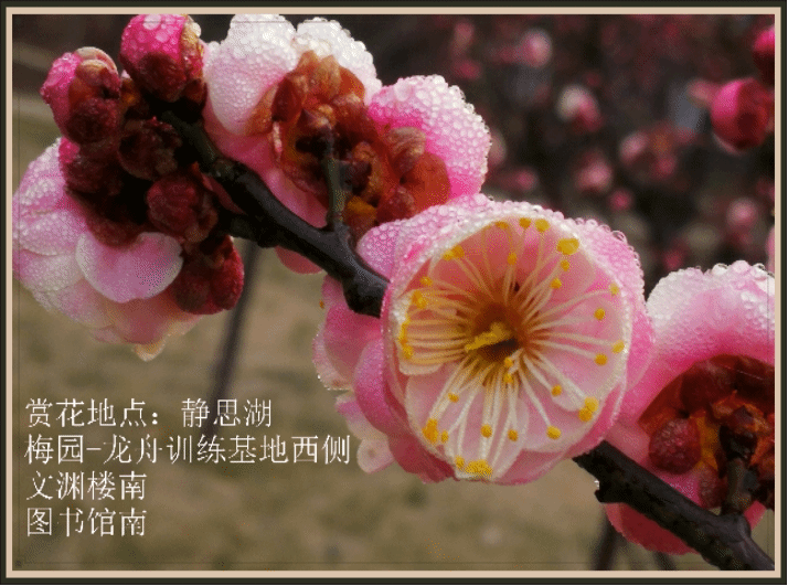 赏花地点:静思湖、梅园、文渊楼南、图书馆南