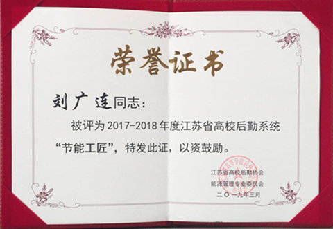 3月25-26日,江苏省高等学校后勤协会能源管理专业委员会2018年年会在徐州召开。江苏省教育厅安全保卫与维护稳定处处长焦伟,江苏省机关事务管理局公共机构节能管理处处长施恩辉,江苏省高校后勤协会副会长兼秘书长黄在宇出席会议并作重要讲话,来自全省各高校近170名会员单位同志参加了会议,会议由江苏大学副校长、能源管理专业委员会主任吴春笃主持。在年会上,我校获评为2017-2018年度“江苏省高校节能先进单位”,刘广连同志获评为“节能工匠”。