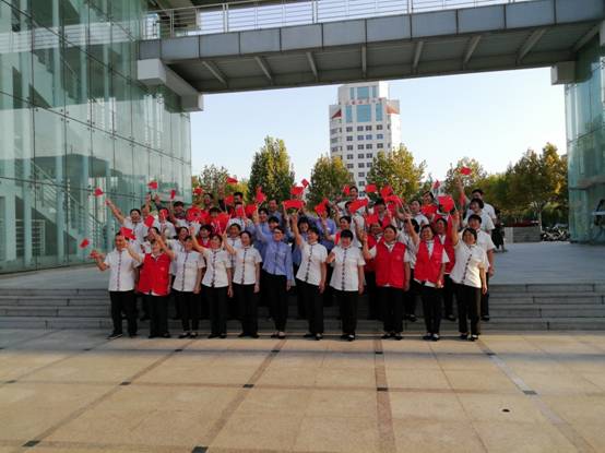 为庆祝中华人民共和国成立70周年,讴歌中华民族伟大复兴奋斗历程, 9月23日下午,苏宁银河物业江苏海洋大学物业服务中心在文通楼前举行了庆祝新中国成立70周年献唱活动。