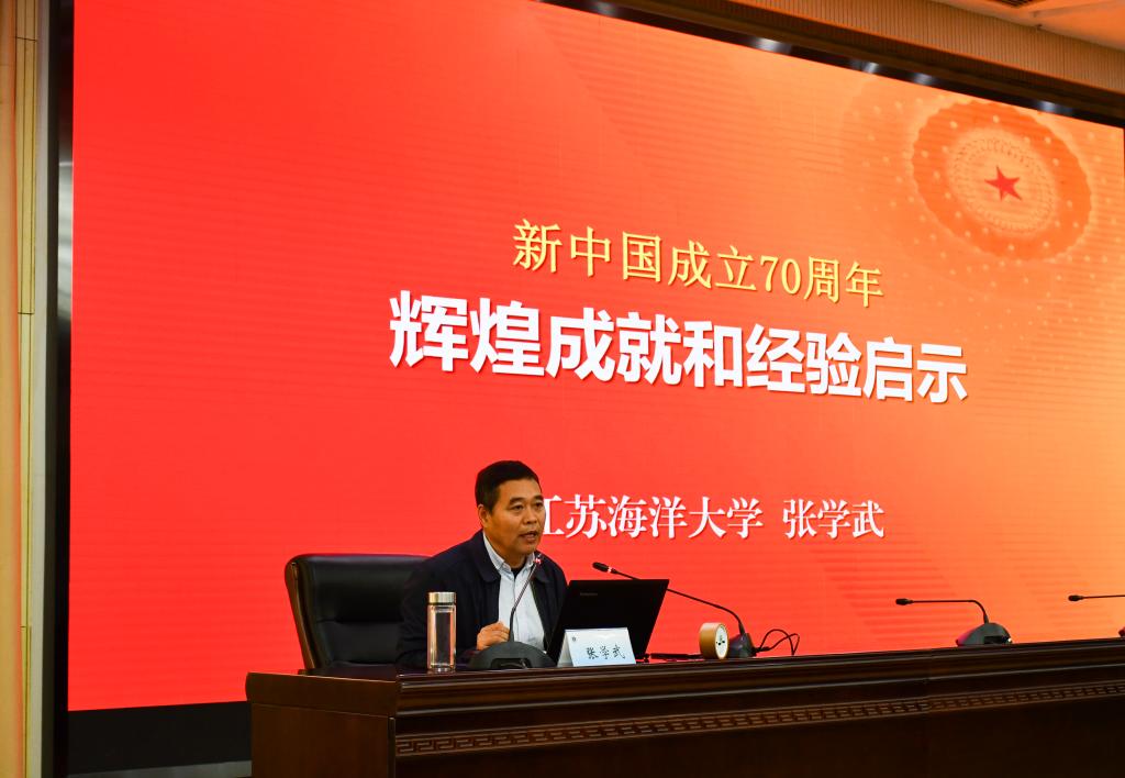 张学武以“新中国成立70周年辉煌成就和经验启示”为题,从艰辛探索,铸就光辉历程;砥砺奋进,谱写壮丽篇章;深刻启示,引领前行之路三个方面进行了系统深入、全面准确的讲解。