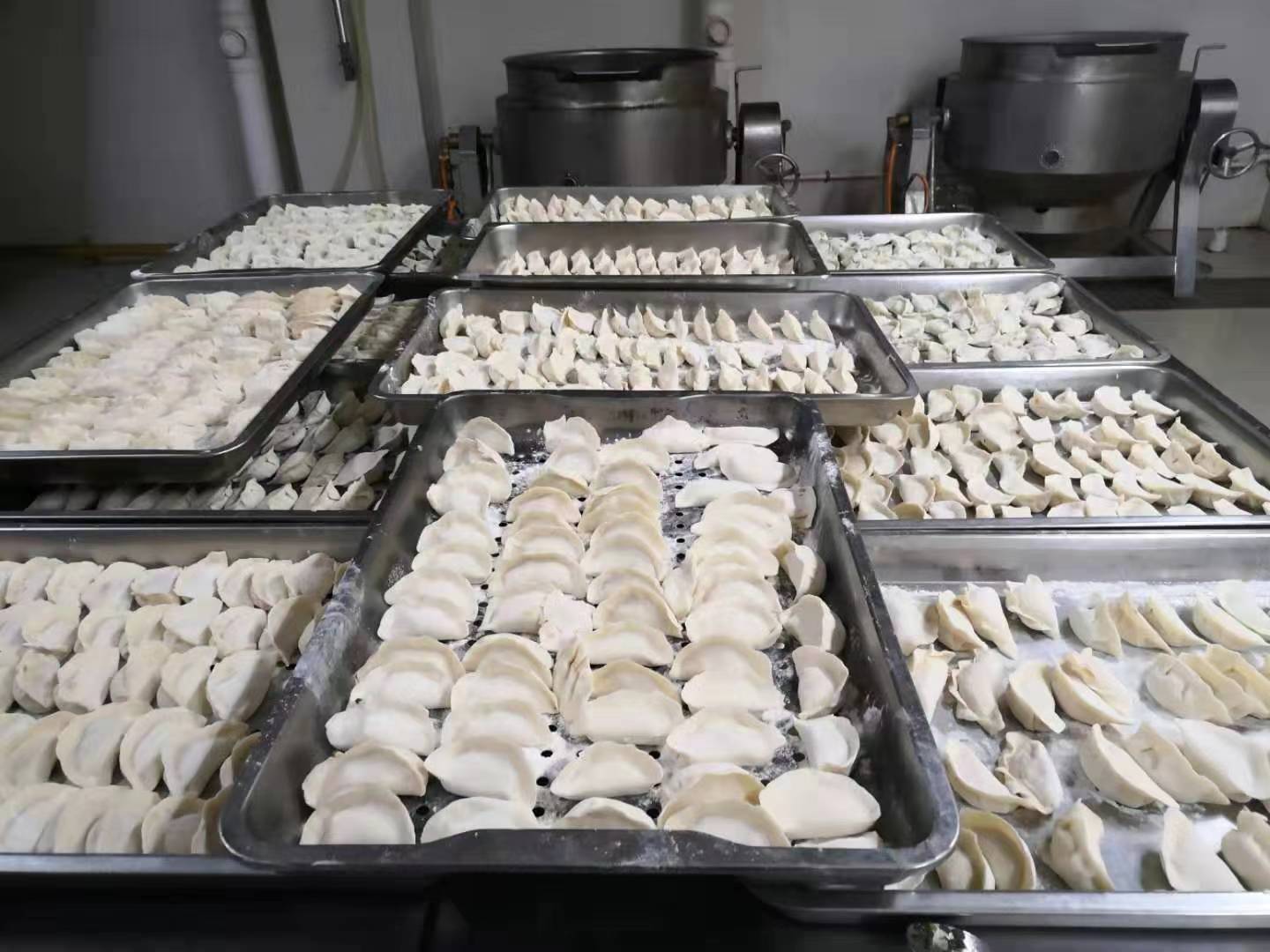 上午九点,包饺子准备工作就绪之后,阿姨们一边动作娴熟地包着饺子,一边和同学们分享着包饺子的心得,大家热情满满,分工合作,有的负责擀饺皮,有的负责包饺子,有的负责摆放,有的负责搬运,都希望在本次活动中大显身手,忙得不亦乐乎,每个人都乐在其中,场面十分热烈。不一会儿,一排排错落有致的精致饺子便诞生了。