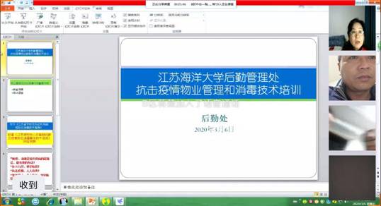 为进一步落实新冠肺炎疫情校园防控措施,普及消毒基本知识,提高消杀工作人员防控消毒实操能力,持续做好疫情防控期间校园预防性消毒工作,3月6日晚上7点,后勤管理处组织召开抗击疫情物业管理和消毒技术网络培训会议,处领导马恒通、冯源、物业科全体人员、5家托管物业公司员工,计113人参加会议。会议由后勤管理处副处长肖莉主持。