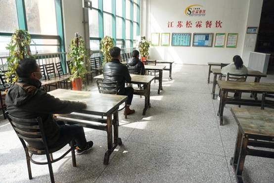 进场、测温、洗手、选餐、就餐、离场,这是江苏海洋大学苍梧校区食堂3月28日开展的开学后食堂供餐就餐防疫工作演练画面。饮食服务总公司副总经理沈加君、监控科科长汤昌林、食堂经理和部分员工参与现场模拟,为即将到来的返校复学师生就餐进行防疫预演。