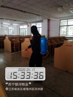 疫情防控责任重大,绝不能有半点差池。正式开学,师生从四面八方涌进入校园,消杀工作更加重要。为此,银河物业除了计划内的消杀工作,又成立了专门的消杀防控组,加强教室、图书馆阅览室等人流量大的区域的消杀力度和频次,以扎实有效的防控消杀工作,维护江苏海洋大学的校园疫情安全。