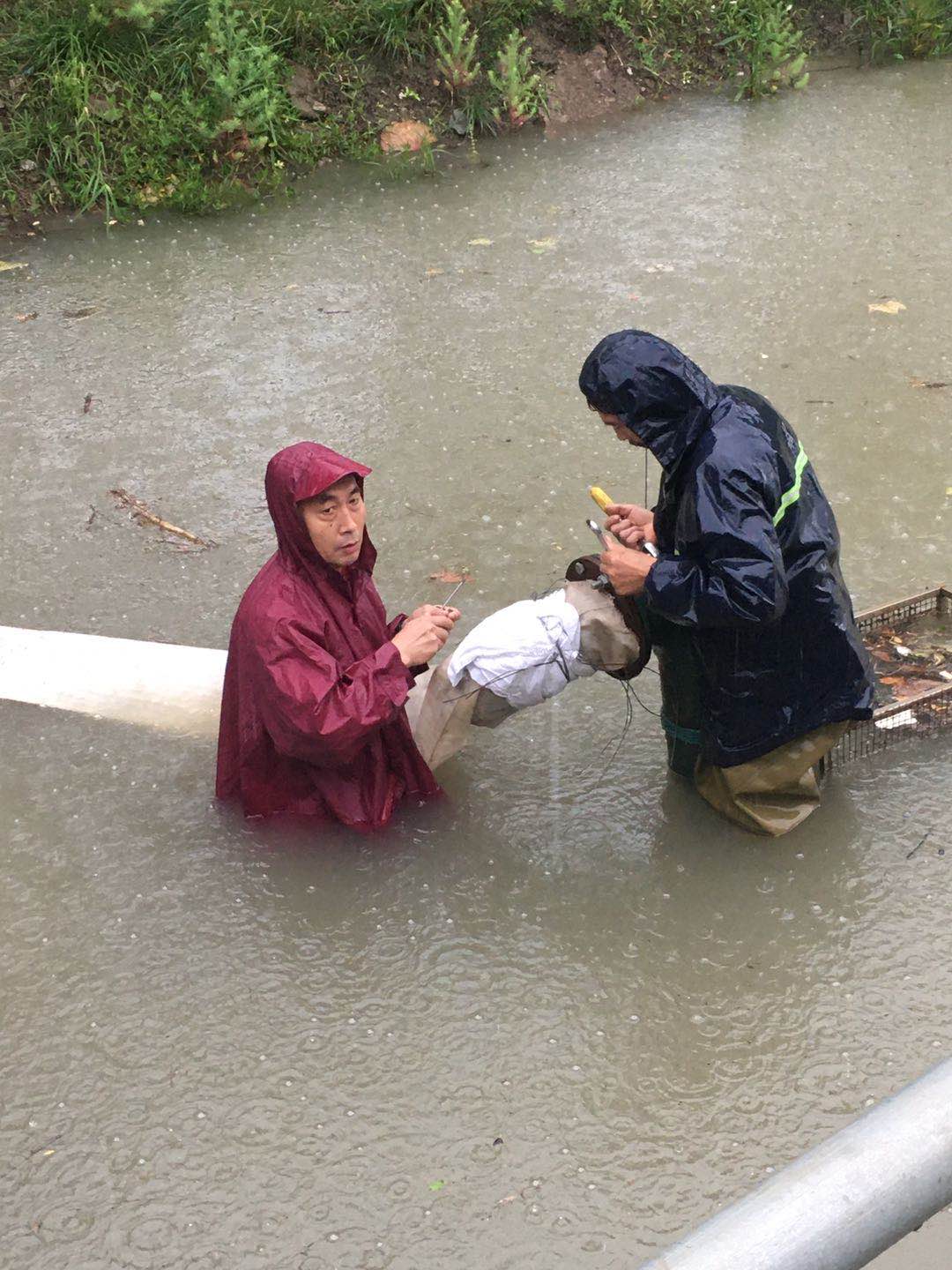 雨情就是命令,防汛就是责任!水电科立即组织施工抢险队开始强排改造,抢险队员一个个浑身湿透,雨水打得睁不开眼睛!危急之中,水电科长张启磐拨开众人一下跳入湖水中,身先士卒带领大家冒雨施工!雨越下越大,站在齐腰深的湖水中,张启磐和抢险队员们忘我奋战,经过1个多小时的紧张施工,强排泵终于开始排水泄洪!