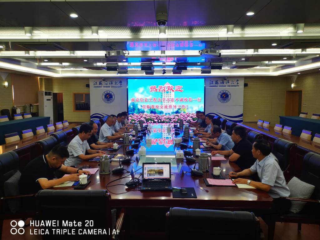 8月4日,南京信息工程大学副校长韦忠平,总务处长陈忠、保卫处处长陈相勤等一行8人来到我校考察,就后勤、保卫、基建等方面进行工作交流。交流会在学术会议中心东海厅举行,我校李梅英副校长,后勤党总支部书记冯源、后勤管理处处长兼饮食服务总公司总经理马恒通等后勤处领导,以及基建处、保卫处等部门相关领导参加了交流活动。