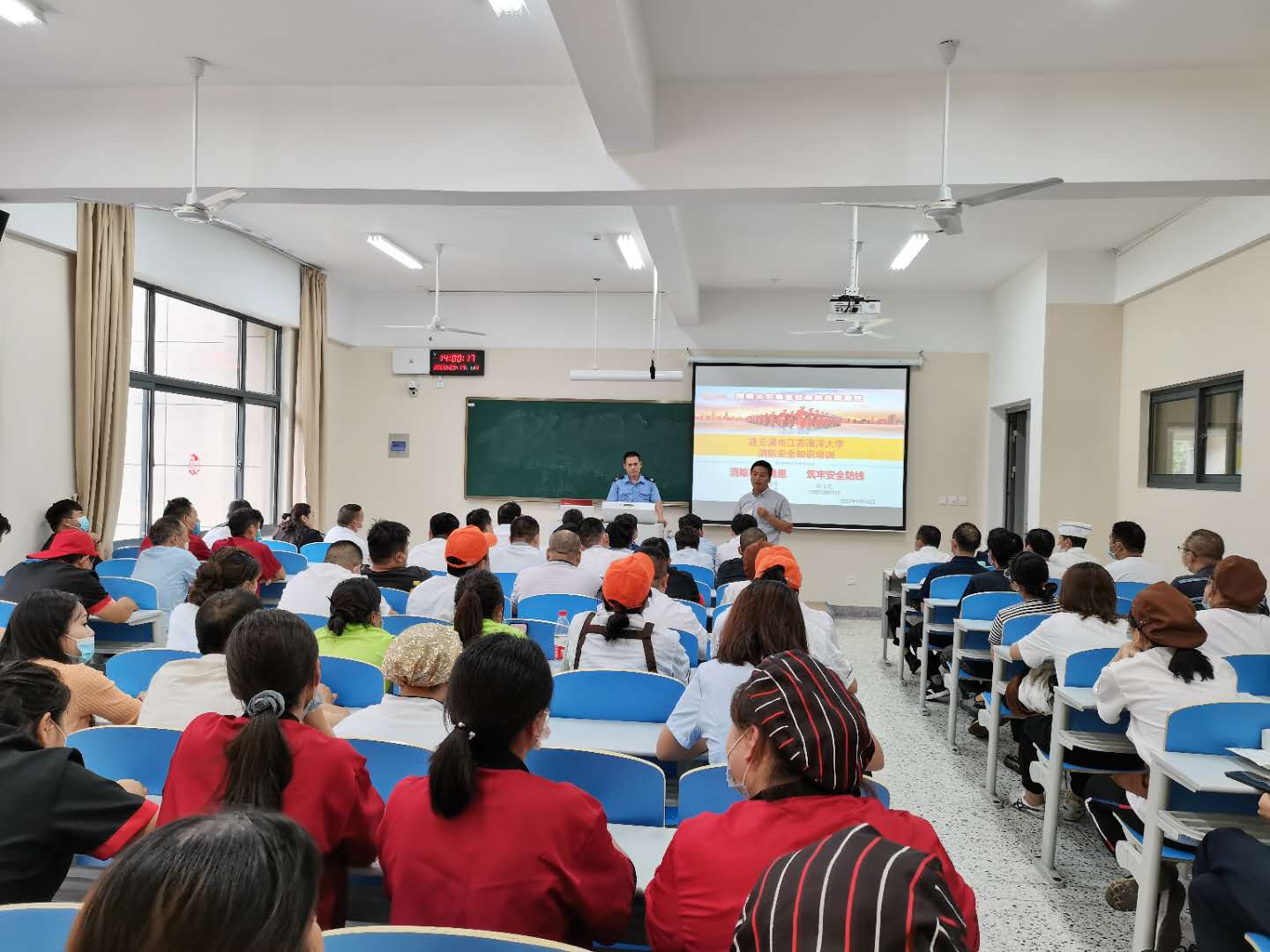 为贯彻落实“预防为主,防消结合”的消防工作安全方针,9月17日下午,饮食服务总公司在文思楼102教室,邀请连云港宣安防火技术有限公司宣传员陆文龙老师,对苍梧校区所辖食堂、浴室的员工开展了宣讲与实物相结合的消防安全知识讲座。饮食服务总公司监控科全体员工、食堂与浴室负责人等100多人参加培训。