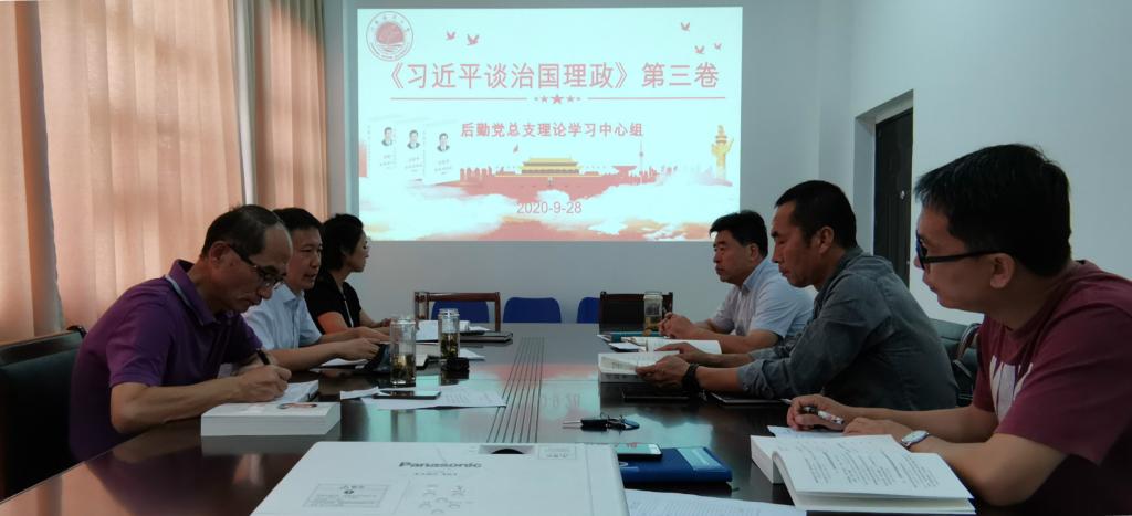 9月28日下午,后勤党总支理论学习中心组在后勤管理处205会议室举行专题学习会,学习《习近平谈治国理政》第三卷,进一步学懂弄通做实习近平新时代中国特色社会主义思想。后勤党总支理论学习中心组成员参加学习会,会议由党总支书记冯源主持,副处长肖莉、郑红斌围绕“ 长期坚持、不断丰富发展习近平新时代中国特色社会主义经济思想”、“我国经济已由高速增长阶段转向高质量发展阶段”以及“全面贯彻习近平新时代中国特色社会主义思想和基本方略”,结合工作实际,分别以“以学习促思考、以思考促工作、以工作促发展”、“学习理论、服务实践,坚定不移走我校节能发展之路”为题,交流了学习体会。