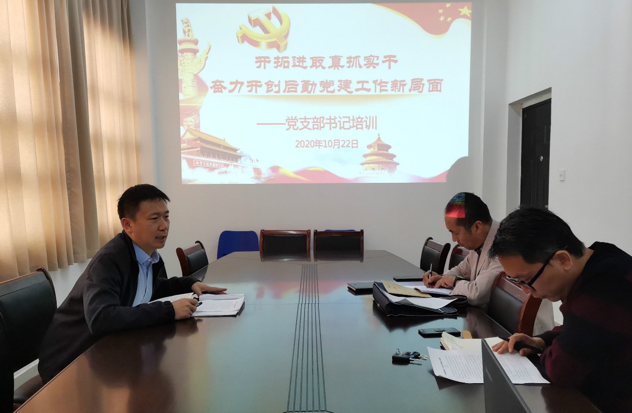 为深入学习贯彻习近平新时代中国特色社会主义思想, 10月22日下午,后勤党总支在后勤管理处205会议室召开了2020年度党支部书记培训会,全体支部书记参加会议,会议由后勤党总支书记冯源主持。