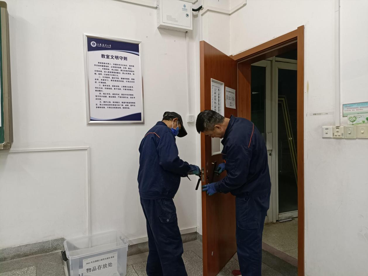 2021年12月18日及12月25日,在我校苍梧校区分别举行了“2021年下半年全国大学英语四、六级考试”和“2022年全国硕士研究生入学考试”。为了保障考试的如期举行,后勤管理处领导及物业科同志多次到文通楼等考场现场检查督促保障工作进展情况,并对现场的具体保障工作进行周密部署。银河物业按照学校要求及相关部门领导的指示,及时制定保障方案,积极部署考试,细化分工、全程跟踪、责任到人,确保所有准备工作按要求落实到位,力争给广大考生营造了一个安全、规范、舒适的考试环境。