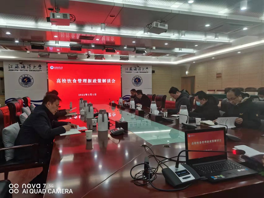 为了进一步贯彻落实省教育厅、省发改委、省财政厅、省卫健委及省市场监管局等五部门《关于规范和加强高等学校学生食堂工作的指导意见》(苏教发函〔20121〕121号文件)精神,落实学生食堂“公益性”政策,提升学生食堂管理工作水平,3月1日上午,副校长李梅英在会议中心东海厅主持召开贯彻高校饮食管理政策解读会,后勤管理处、财务处、审计处、招标办、分校区管委会等部分负责人参加会议。