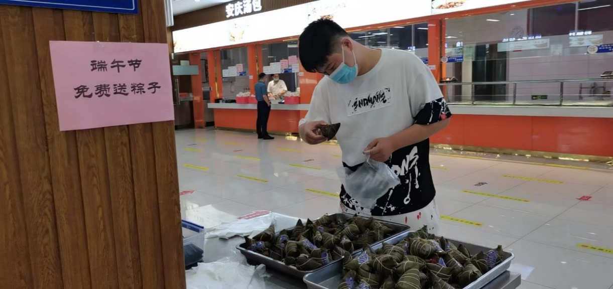 又是一年端午至,粽香四溢。饮食服务中心为丰富校园生活,营造浓厚的节日氛围,于6月3日举办了以“品味端午、免费享粽”为主题的活动。活动在苍梧校区七个学生食堂同时开展。