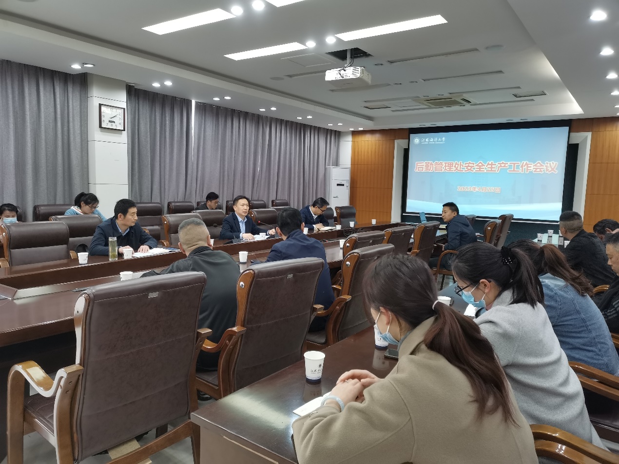 为贯彻落实学校2023年安全稳定工作部署,压实安全生产主体责任,4月24日,后勤管理处在文渊楼会议室召开安全生产工作会议。后勤管理处处长冯源主持会议,全体职工参加了会议。