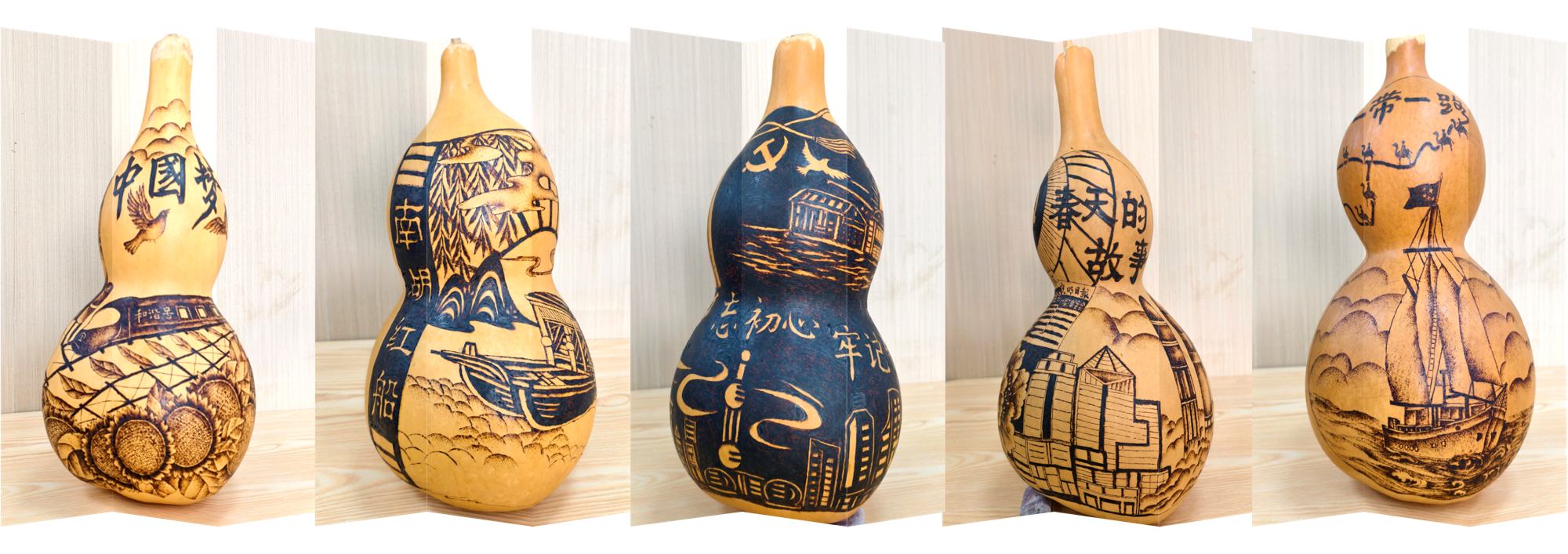 活动中,大家在非遗传承老师的讲解和指导下,学习了传统技艺并动手制作,亲身感受到了传统技艺的魅力。非遗传承人在葫芦烙画作品中集中展示了红船精神、改革开放精神、丝路精神、工匠精神等,作品通过特殊的民间技艺,形象的展示了中国共产党在百年风雨征程中淬炼锻造出的伟大精神。每件作品对应中国共产党带领中国人民革命和建设的各个时期,构成图文并茂的党史学习教育鲜活现场。