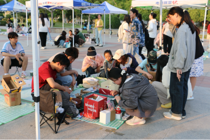 活动现场规划有序,设置70余个标准化摊位,涵盖专业书籍、电子产品、服饰配件等各类闲置物品,品类丰富多样。毕业生们用心标注物品的使用故事,热情分享个人成长经历,让一件件旧物成为传递情感与环保理念的独特载体。活动现场气氛热烈,吸引众多师生踊跃参与,有效推动了闲置物品的高效流转,生动诠释了“物尽其用”的绿色发展内涵。
