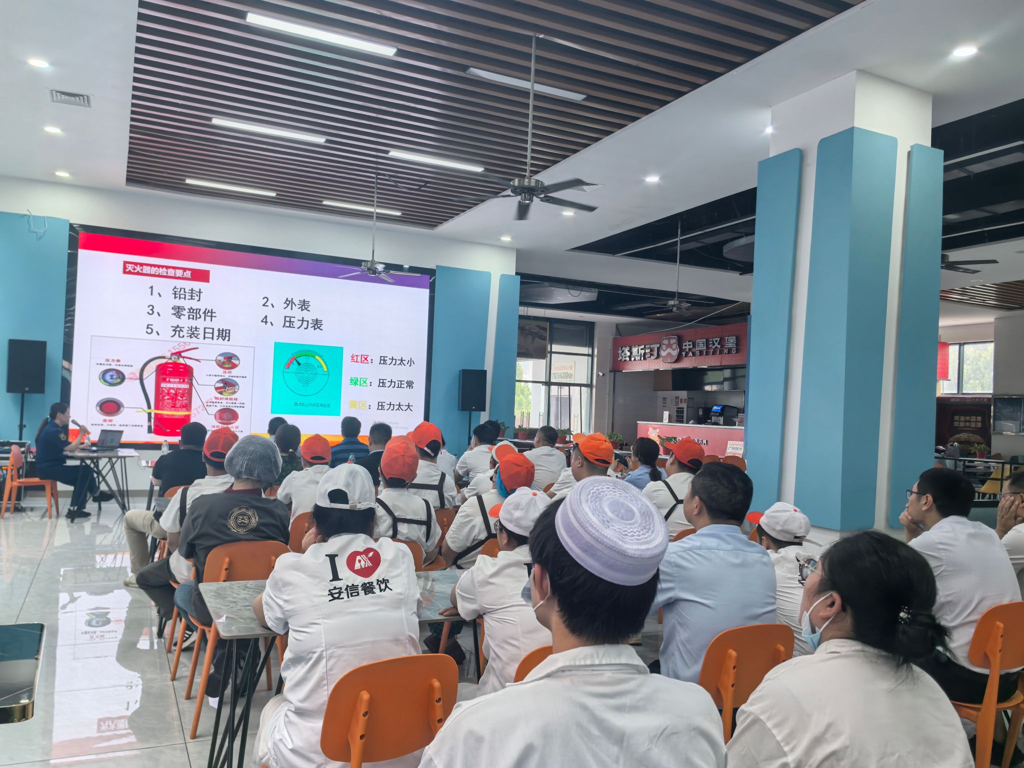 为贯彻“安全生产月”部署,6月23日,饮食服务中心在食堂大厅举办消防安全专题培训,特邀市消防救援支队刘函如科长授课,中心主任张长胜主持,近百名管理人员及安全员参加。