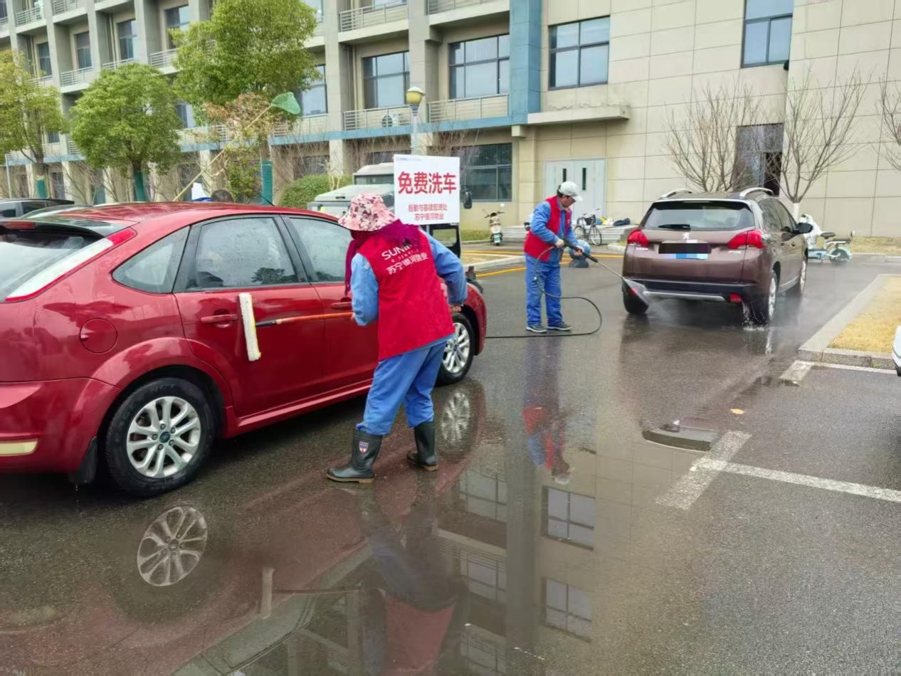 3月4日,在第四教学区停车场,志愿者们身穿红马甲,分工明确,配合默契,为教职工提供免费洗车服务。他们有的手持高压水枪冲洗泥沙,有的用长柄刷清理车身,有的用抹布仔细擦拭,还有的负责最后的擦干。虽然当天气阴沉气温不高,水花溅湿了大家的鞋袜,但大家热情高涨,干得热火朝天。据统计,活动当天共清洗车辆50余台。此项义务洗车活动是我部门十几年来一直坚持的传统“学雷锋”项目,不仅为教职工提供了生活便利,更拉近了物业服务人员与师生之间的距离。