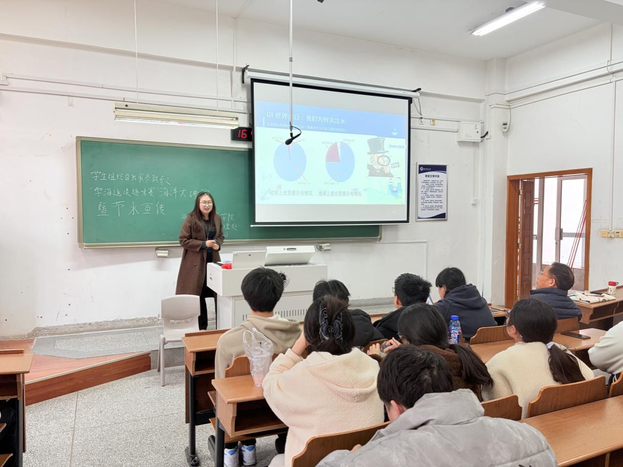 以“专”赋能,拓展科普深度。3月25日下午,邀请海洋资源与环境系副主任马晓娜博士作海洋环保主题讲座,讲座以“海洋奇遇记·学海逐浪趣味赛”为载体,围绕海洋生态现状、水污染防治、水资源可持续利用等内容开展专业科普。讲座过程中,搭配趣味竞猜互动,通过讲解和互动,利用学校海洋特色专业优势,深度融合节水宣传与理念教育,拓宽了视野,激发了师生守护蓝色家园的使命感。